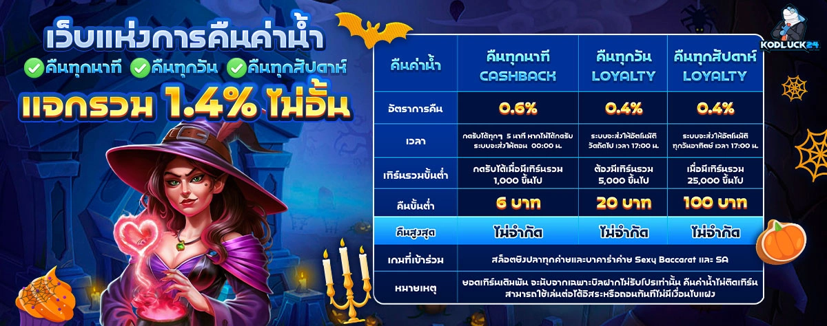 คืนค่าน้ำรายวัน สล็อต-ยิงปลา-บาคาร่า ไม่จำกัดจำนวน