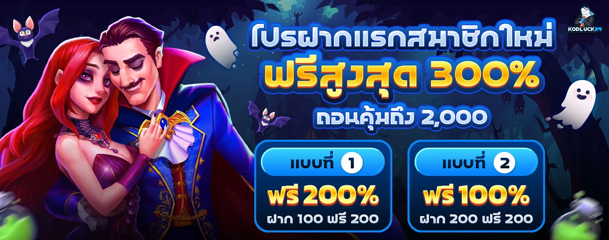 โปรฝากแรก สมาชิกใหม่ ฟรีสูงสุด 300% ถอนคุ้มถึง 2,000